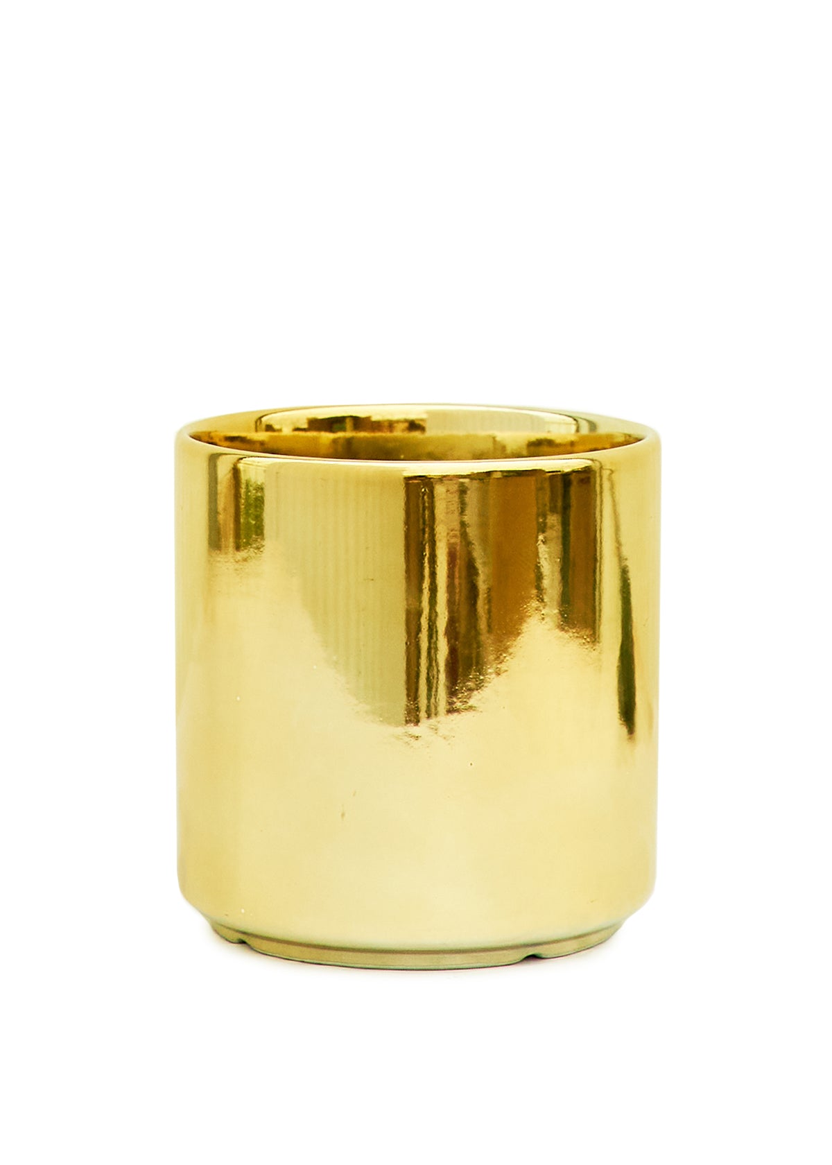 Cylindrical Ceramic Planter, Gold 5" Wide