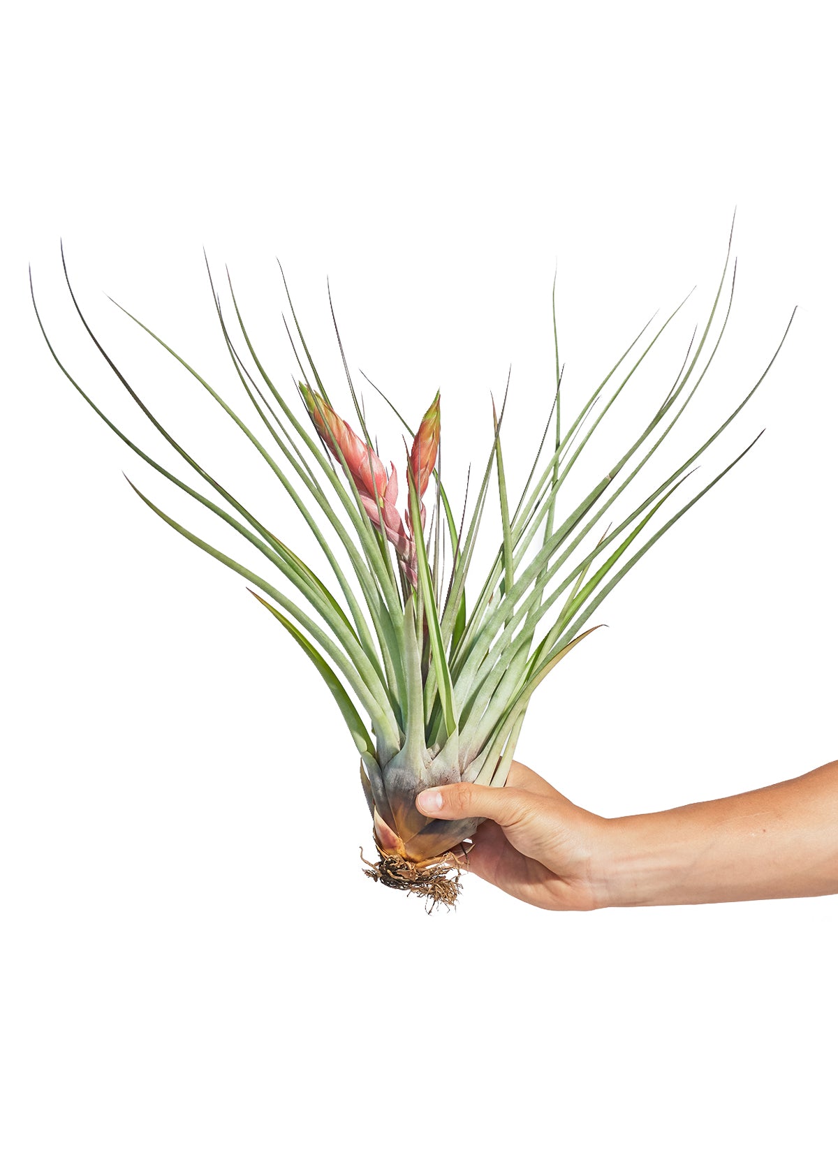 This air plant can grow without soil and obtains its nutrients from the air and rainfall. When Tillandsia fasciculata 'Tropiflora' blooms, it produces a tall inflorescence with pink or purple flowers. The flowers are quite small and can be easily overlooked among the showy foliage. This cultivar is popular among collectors and enthusiasts of air plants for its unique and attractive appearance.