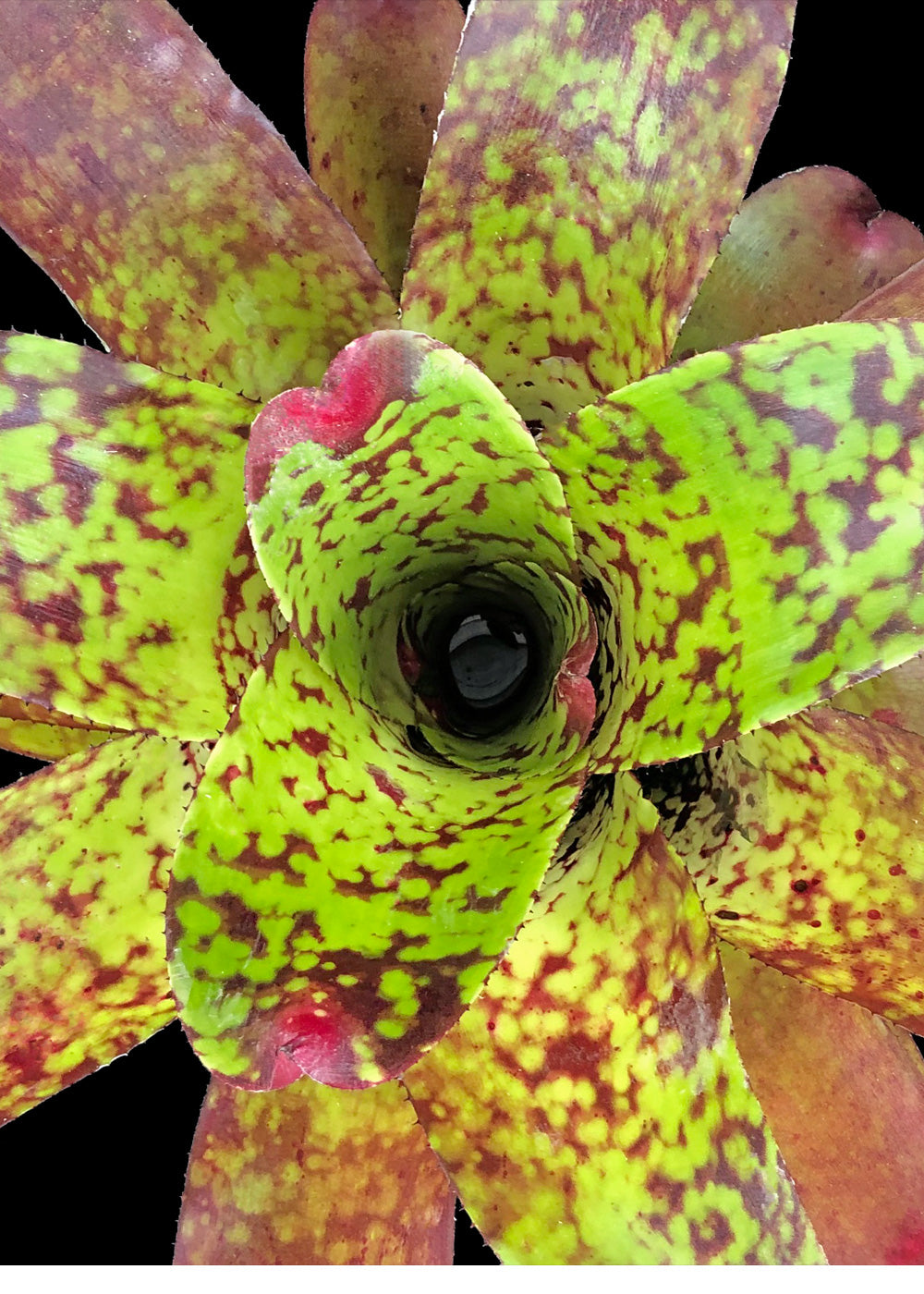 - Description: A rosette shaped, symmetrical lemon-lime foliage with bright red tips and splotches.